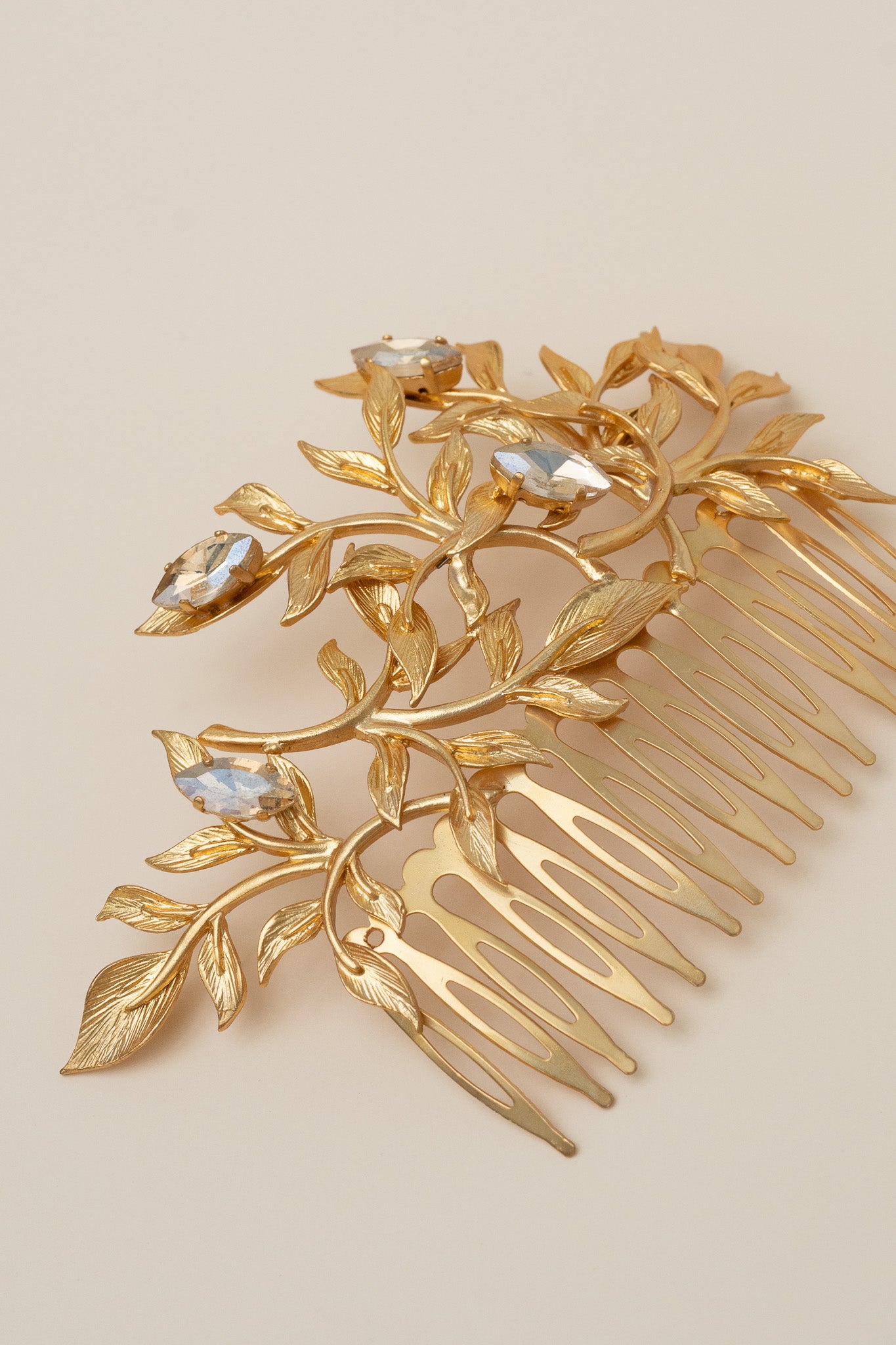 Materials: Brass base with 24k gold plating and crystals