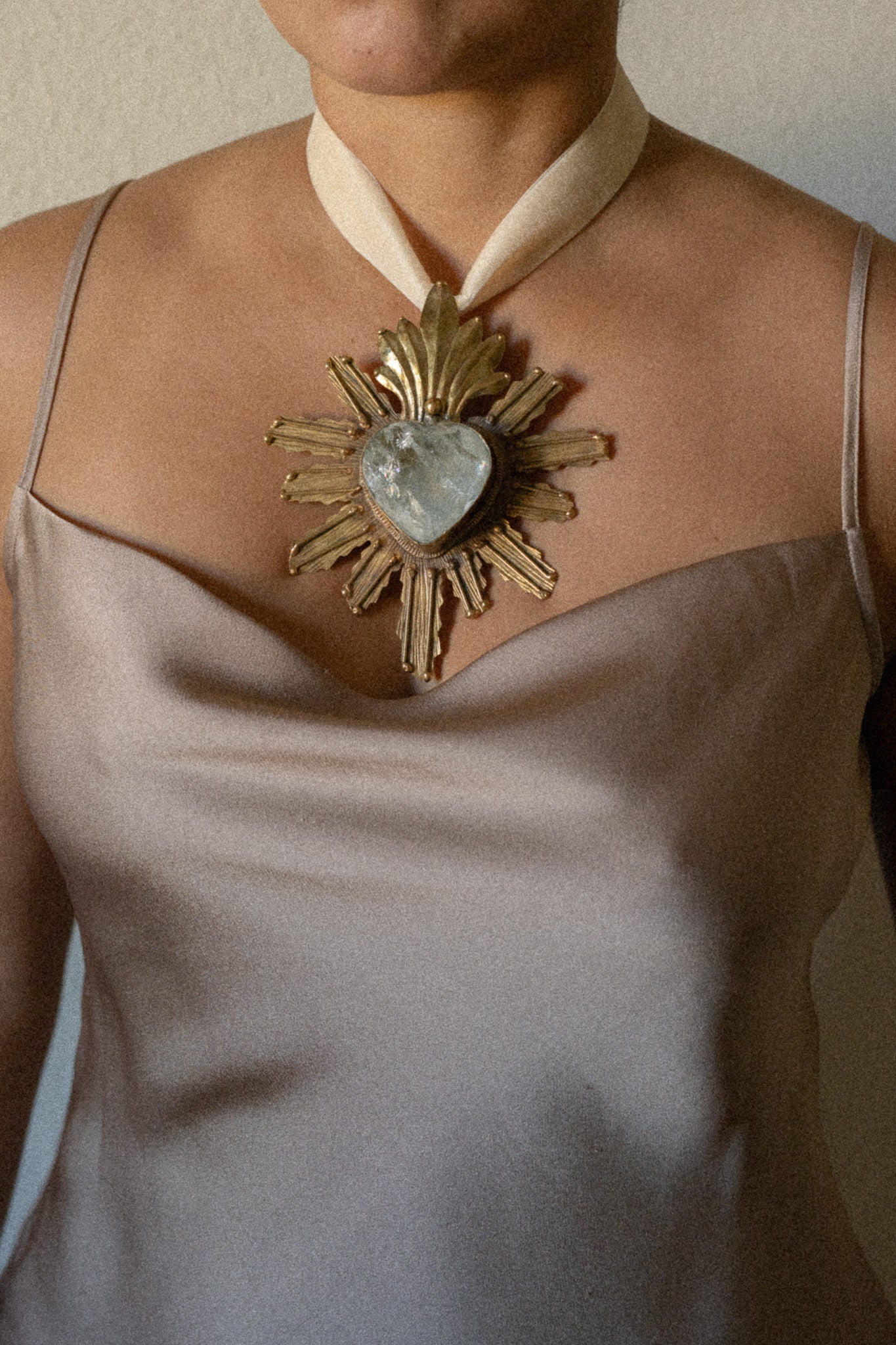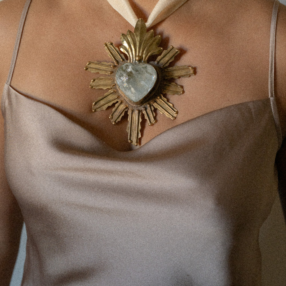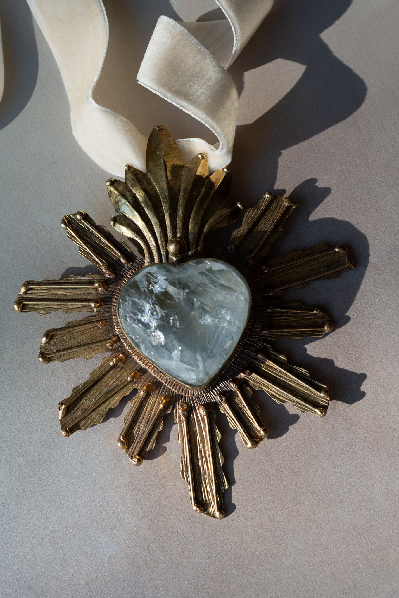 For this collection, an additional skilled artisan uses a traditional method that has been passed down for generations: martillado. This technique requires the artisan to use hammers of different shapes, sizes, and weights, depending on the alloy, the object's size, or the work phase. In addition, stone chisels are used to outline and adorn the object's final shape. This creates the gold flame that will be added to the quartz heart.