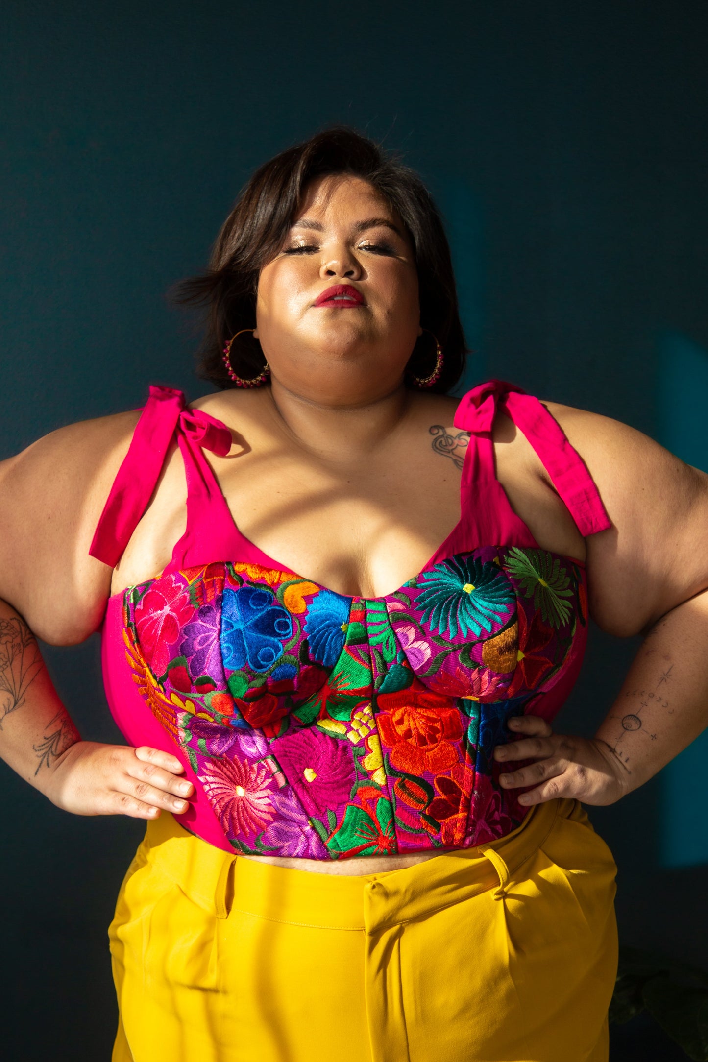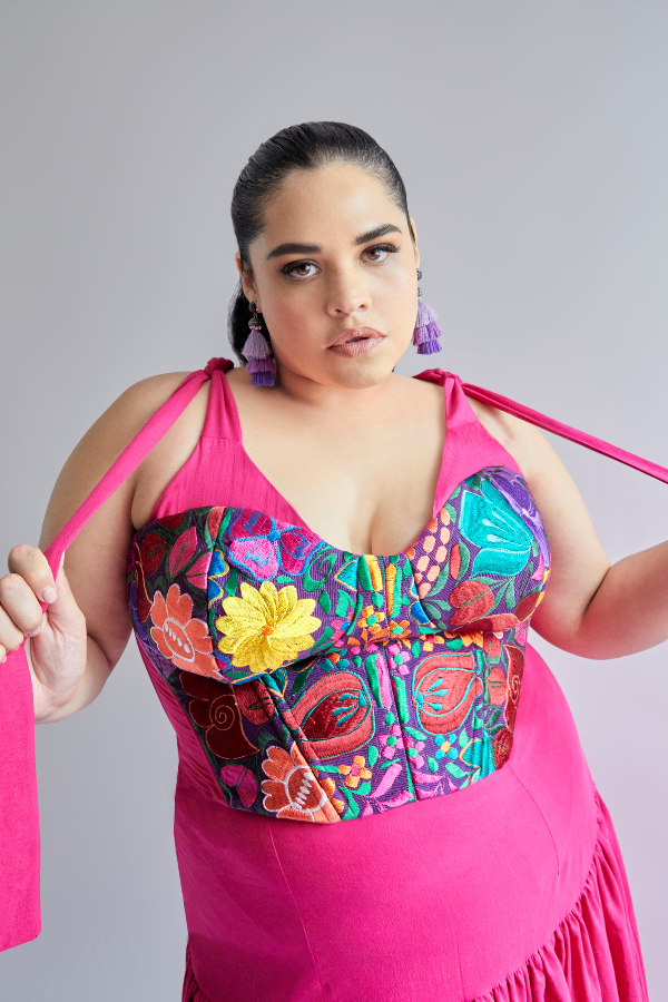The embroidery and artisanal techniques are done in an ethical and collaborative manner with artists from various Indigenous communities in México. Each design is created by Nayibi Villarreal, an up-and-coming Mexican clothing designer from CDMX.