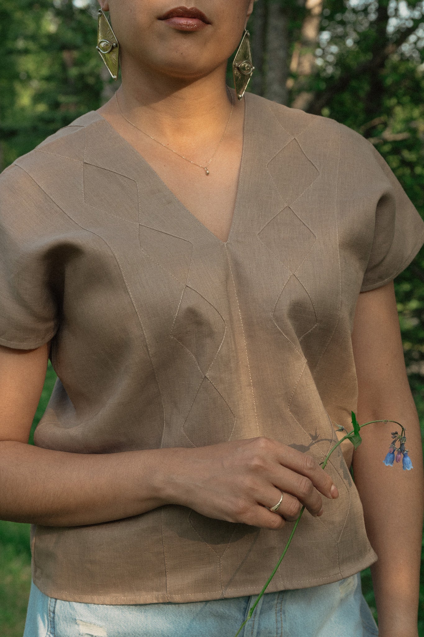 This cropped linen top is handcrafted in San Melchor Betaza, Oaxaca by the artisans of Bee Staz. The minimalist silhouette is elevated by a panel of handcrafted rhombus motifs—referred to as "butterflies"—symbolizing dawn in Betaza’s textile language. With a soft V-neckline and an easy, relaxed fit, it pairs beautifully with denim, skirts, or high-waisted trousers for an effortless yet meaningful look.
