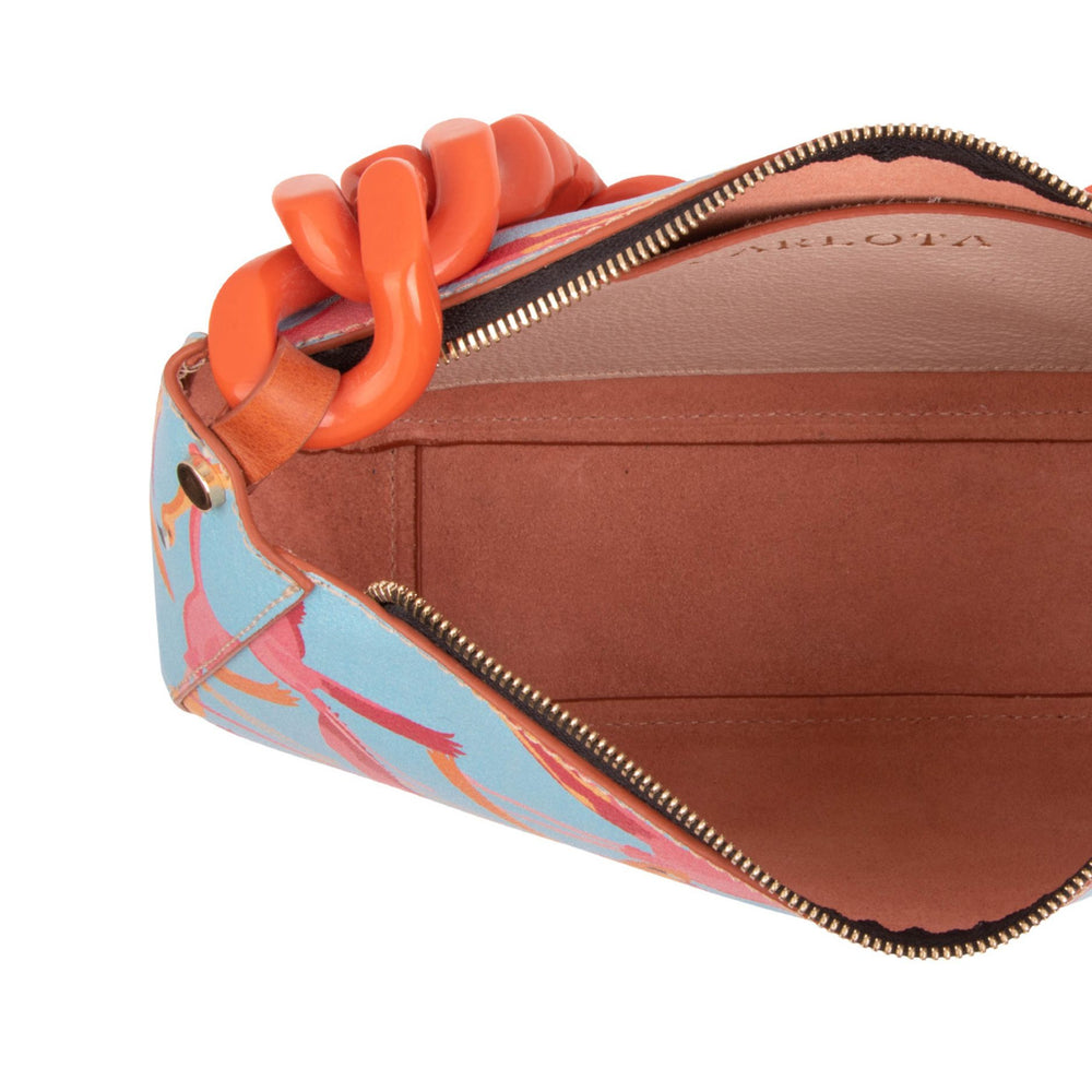 • Proper care for your handbag: This Carlota handbag is made with high-quality materials, and therefore should be treated with care, protecting it against the elements. Due to the delicate nature of the materials, daily use can cause scratches and scuff marks on the surface, so we recommend you treat it gently. The leather in our handbags is submitted to an important natural dye process, and the suede lining is pigmented with natural anilines, so we recommend that you be careful with any light-color items that might come into contact with it. On textile surfaces, carefully clean the soiled areas using water and soft detergents. To keep your leather products in optimum shape, clean with a soft dry cloth, or, if necessary, have them professionally cleaned.