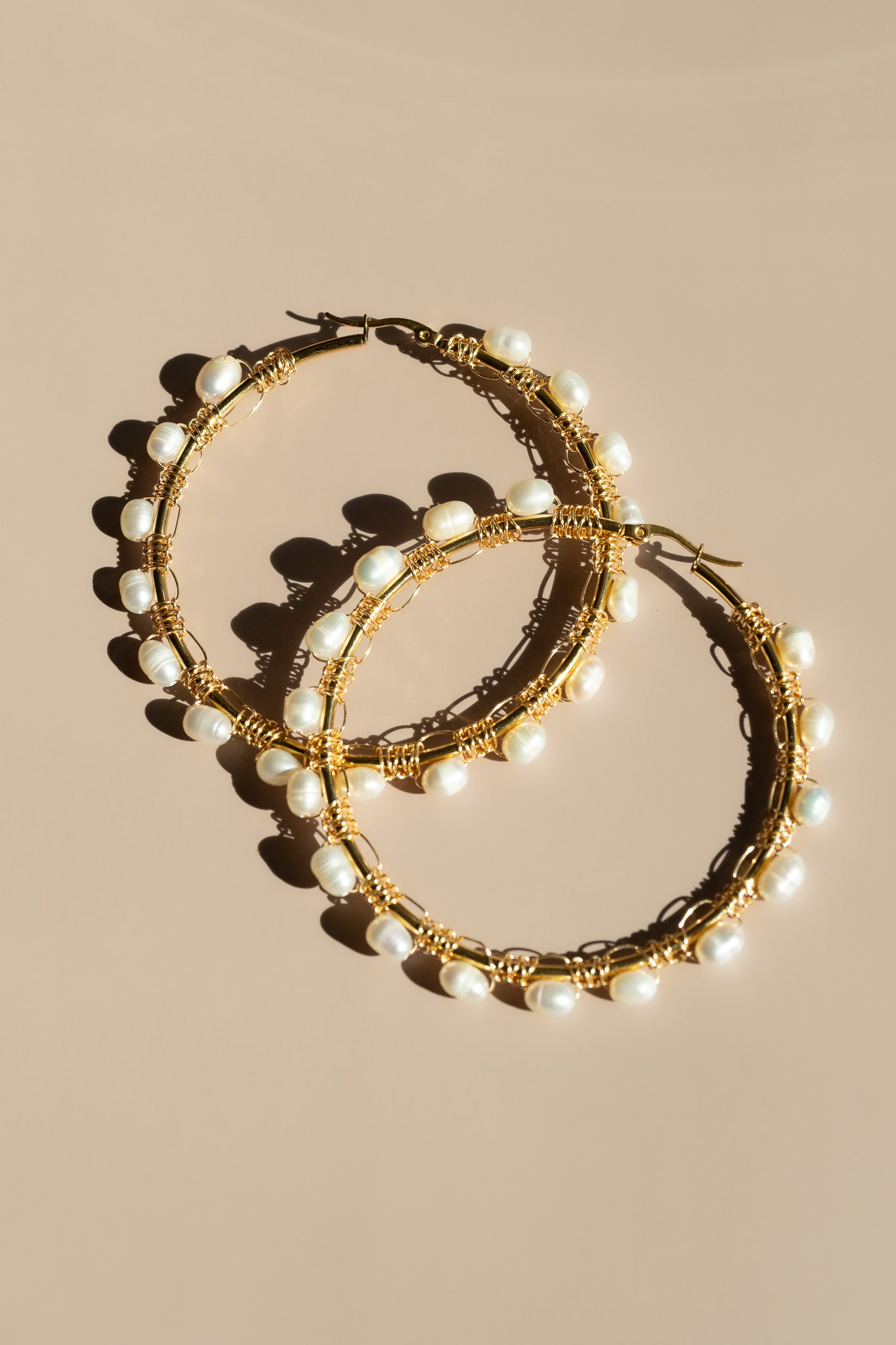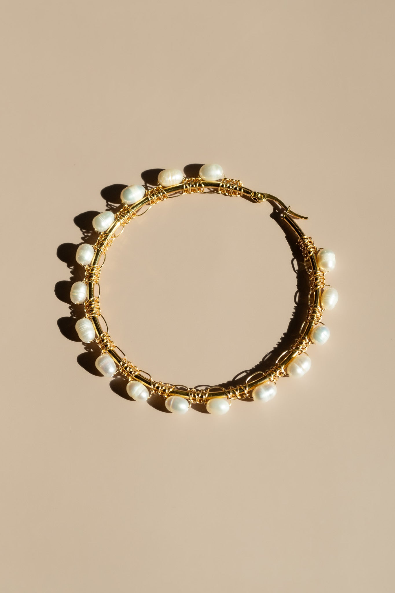 • Material(s): Gold plated hoop, pearls