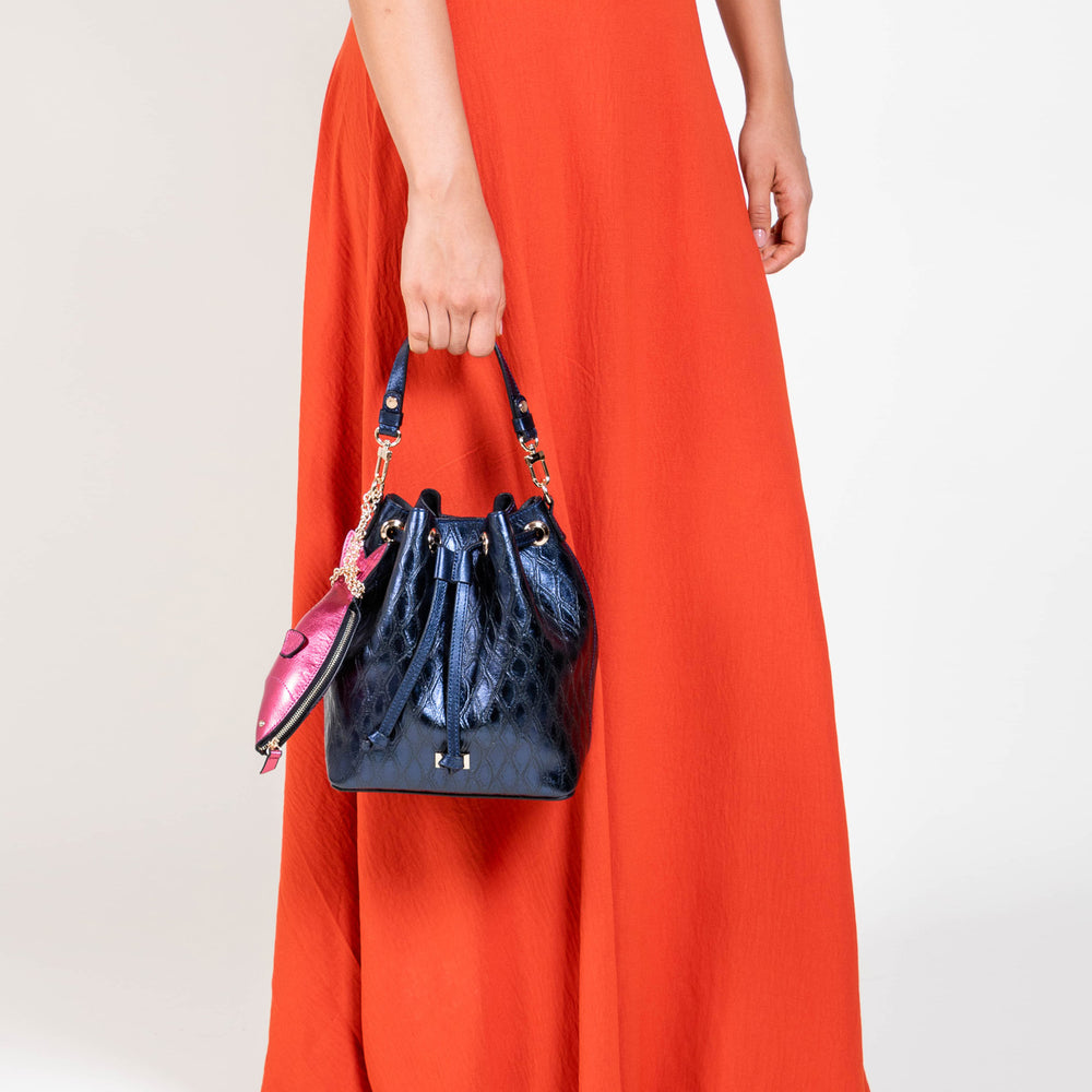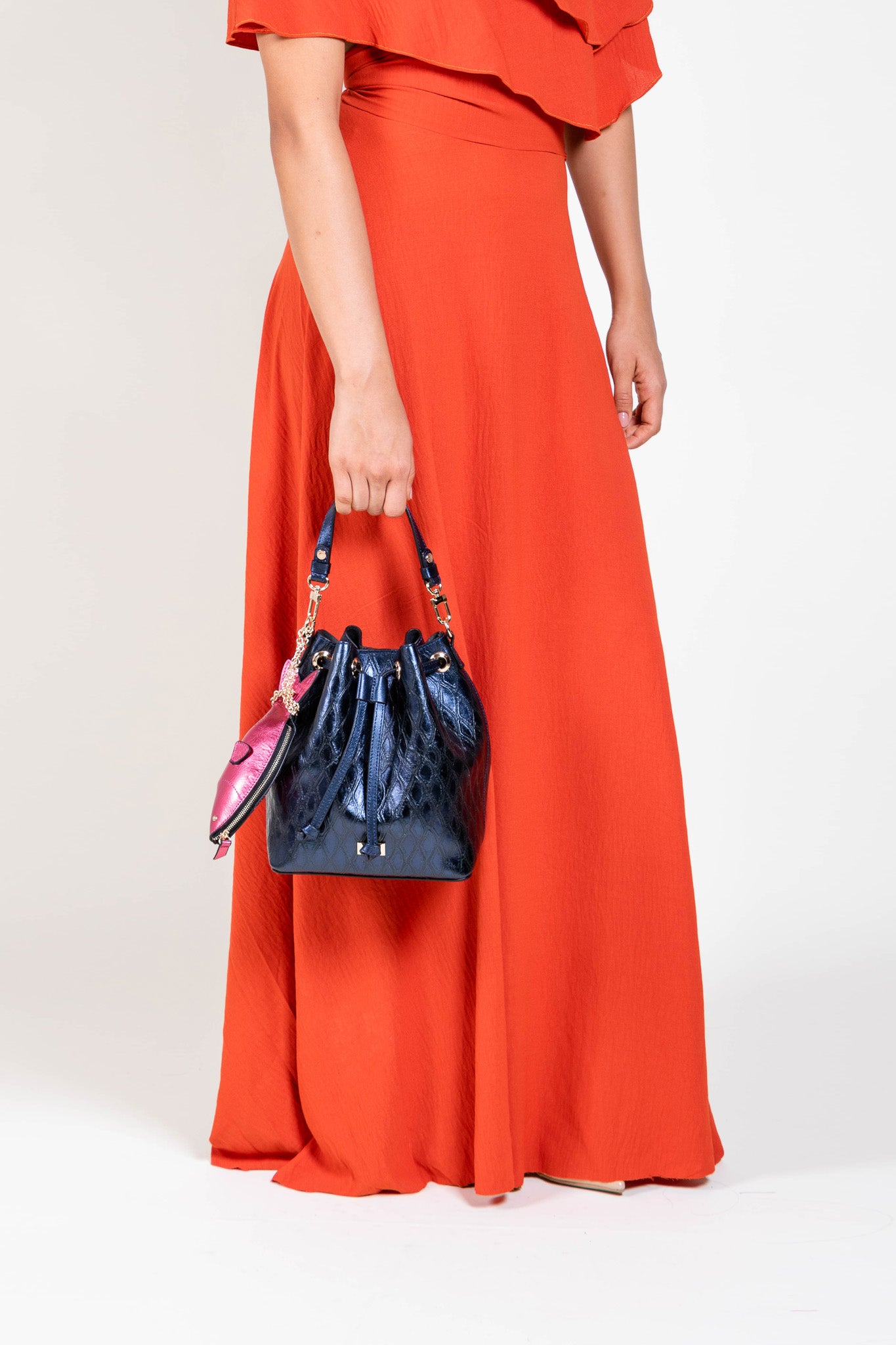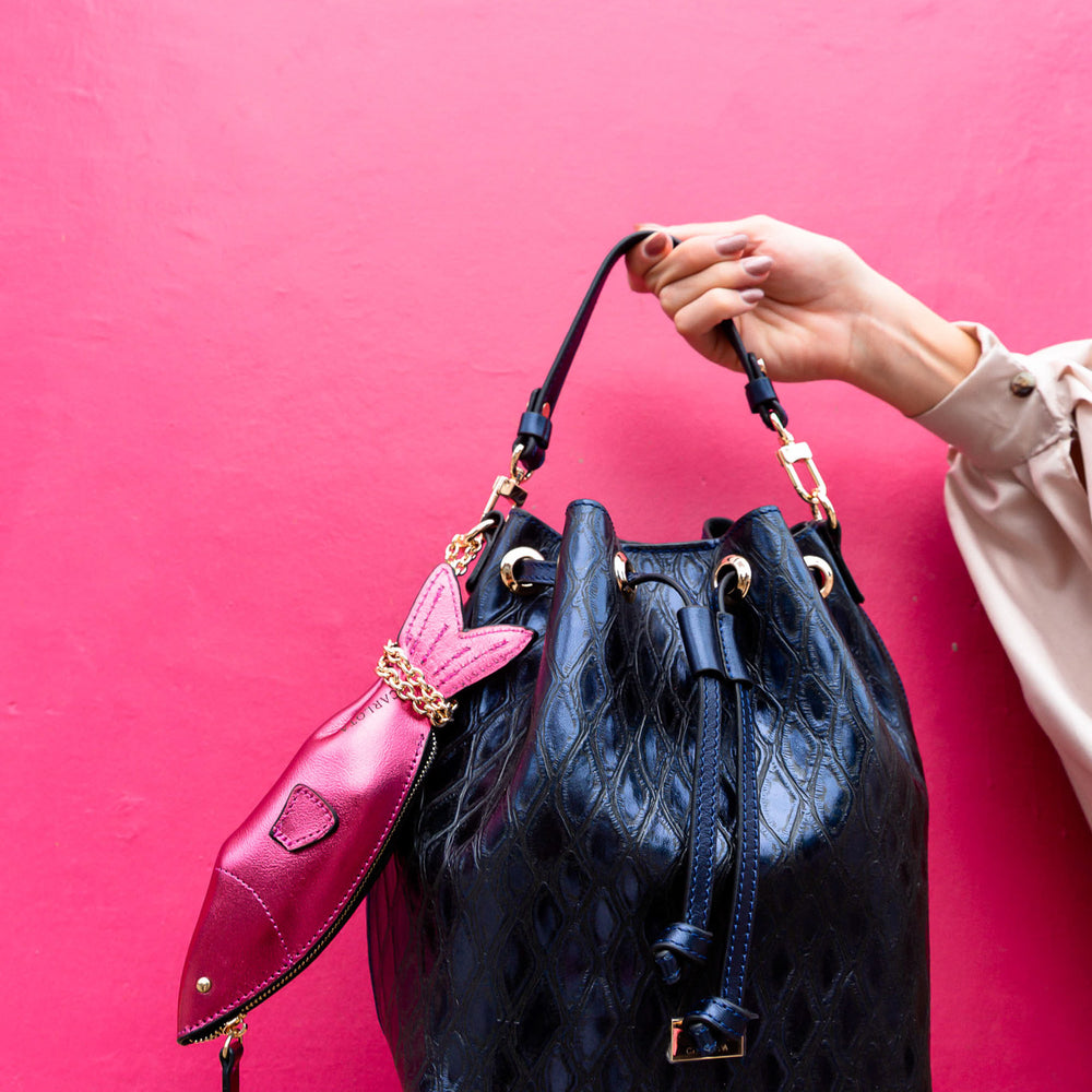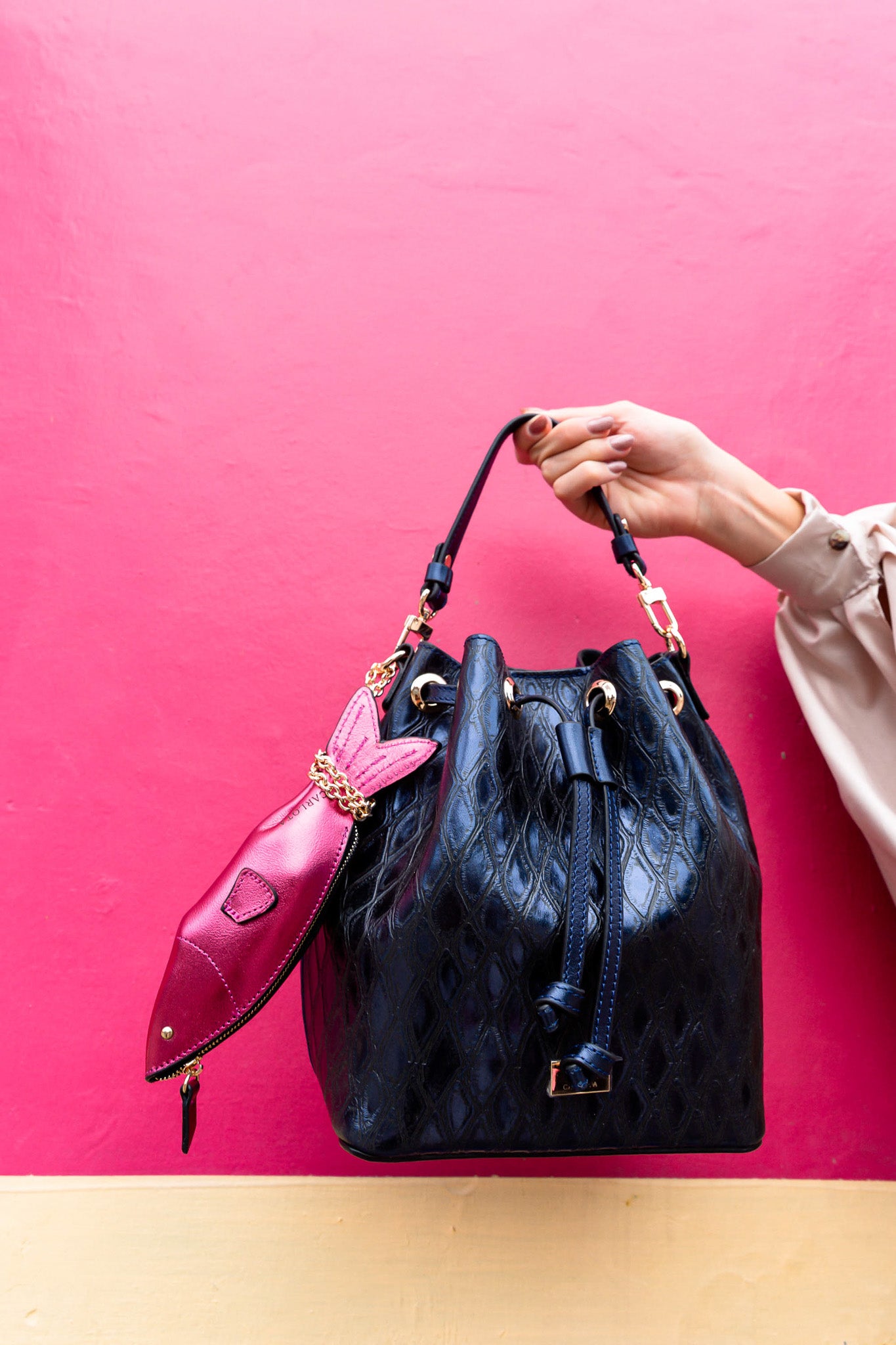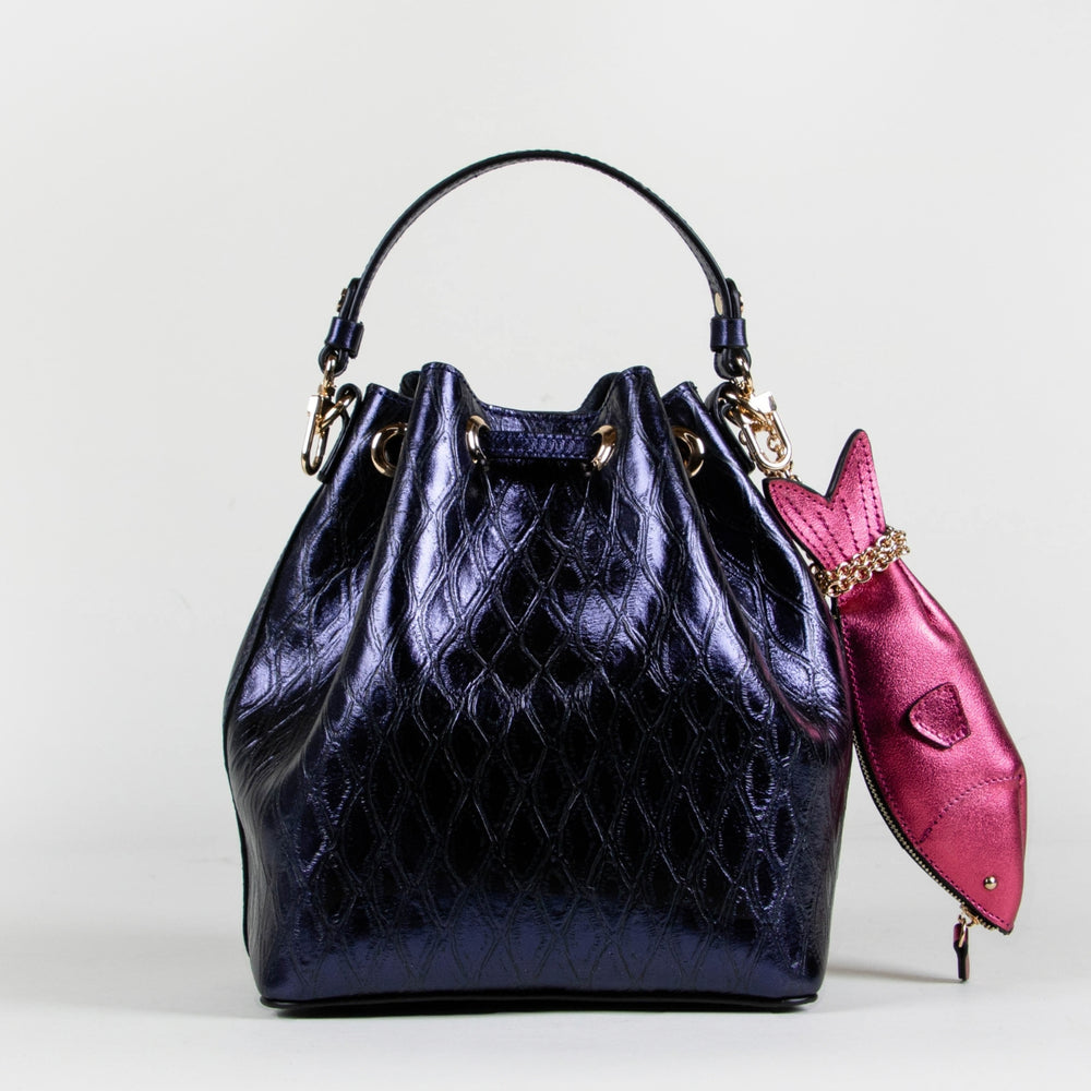 The finishing touch is a zippered fish-shaped charm, equal parts whimsical and functional, offering just enough space for your smallest treasures like earbuds, lip balm, or coins. With its balance of practicality and artistry, this bag is as playful as it is sophisticated.