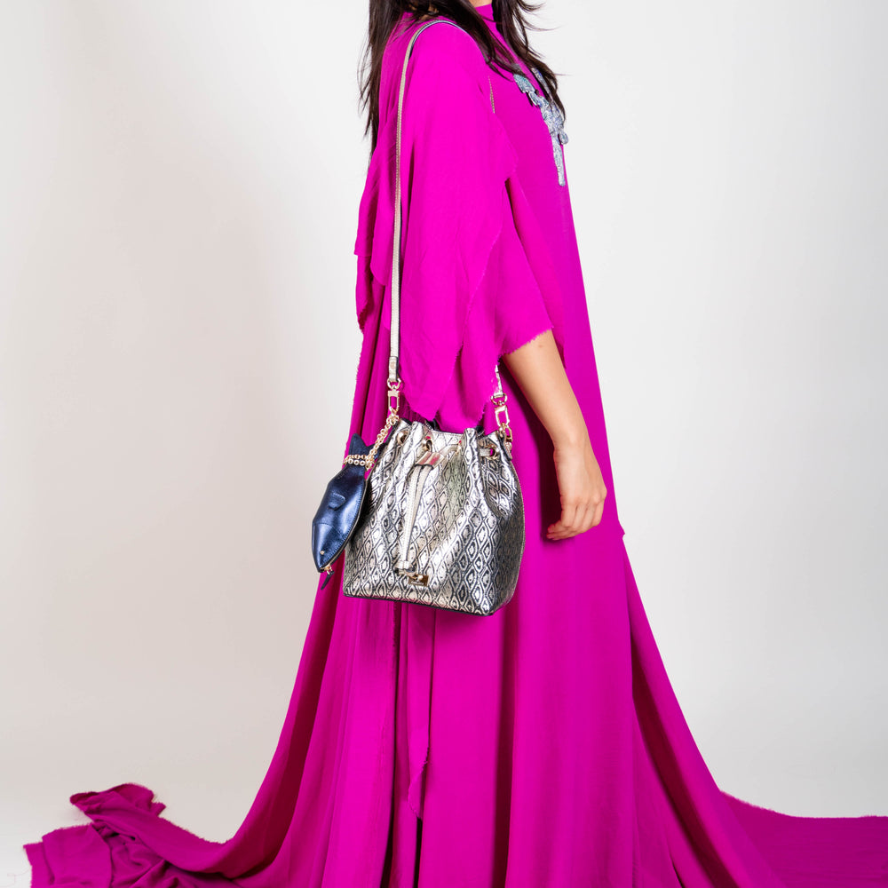 The finishing touch is a zippered fish-shaped charm, equal parts whimsical and functional, offering just enough space for your smallest treasures like earbuds, lip balm, or coins. With its balance of practicality and artistry, this bag is as playful as it is sophisticated.